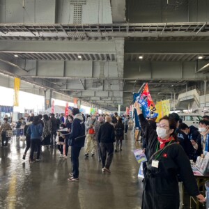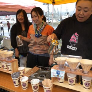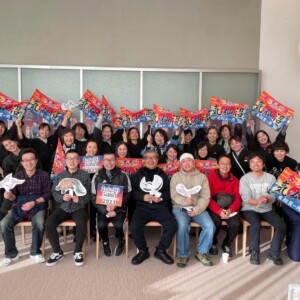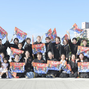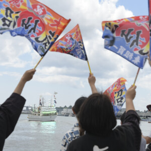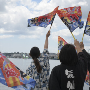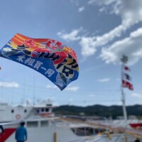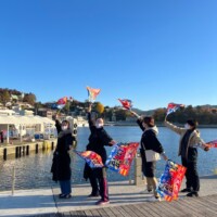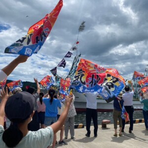 「出船送り」では、気仙沼つばき会オリジナル「福来旗(フライキ)」と呼ばれる旗を集まったみなさんに貸し出し、大海原へ向かう漁師さんたちを紙テープやいってらっしゃいの声援とともに、盛大に見送ります。
