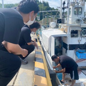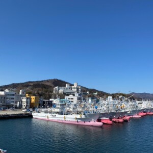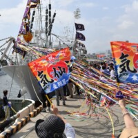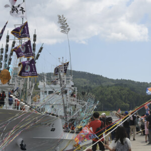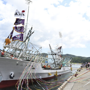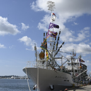 多くは大安吉日の11時出港。気仙沼に30隻以上ある遠洋マグロ船の出船から、年に1度のサンマ船一斉出船おくりまで、あらゆる船に、安全航海と大漁を祈願して「いってらっしゃい」と声をかけつつ、お見送りしています。